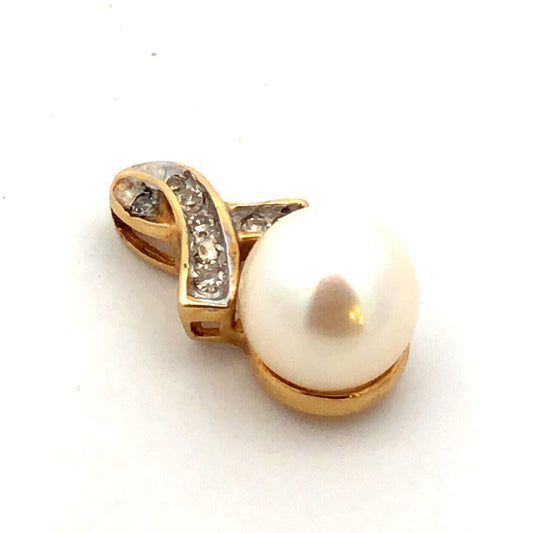 Designer ADL 10K Yellow Gold Round White Pearl Diamond Accent Pendant