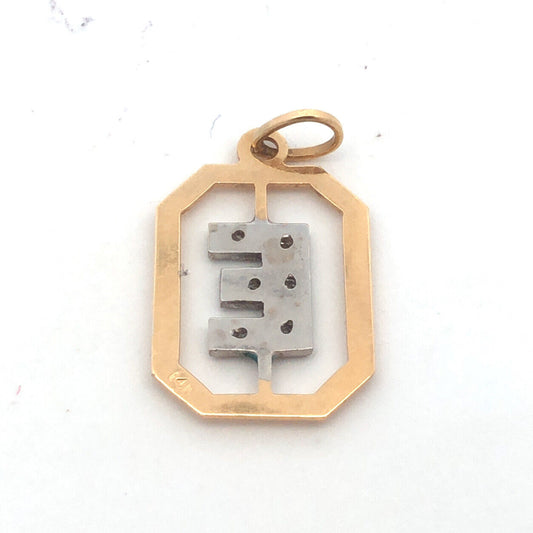 Estate 14K Yellow White Gold Round Diamond Letter Initial E Monogram Pendant
