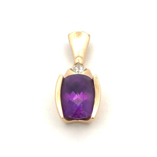 Designer GS 14K Yellow Gold Cushion Cut Amethyst Diamond Modernist Oval Pendant