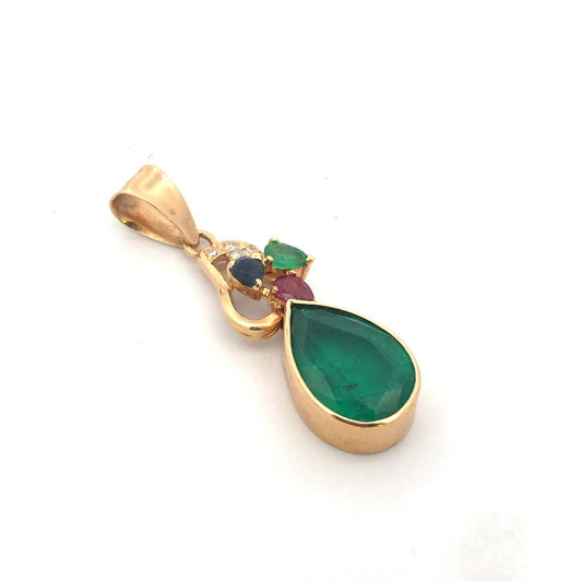 14K Yellow Gold Pear Emerald Sapphire Ruby Diamond Statement Pendant