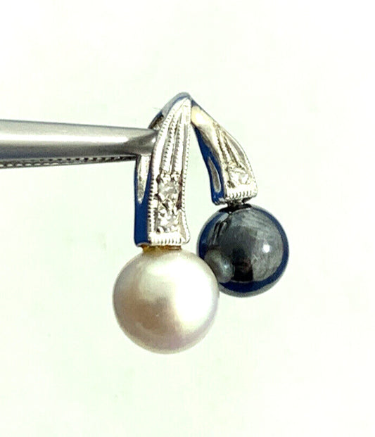 14K White Gold Black White Pearl Diamond Accented Pendant