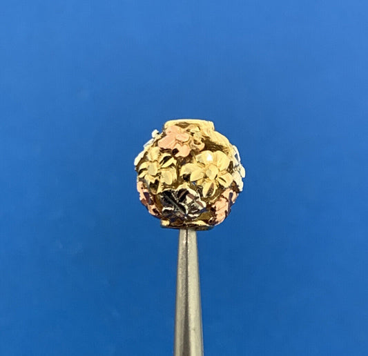 10K Tri Gold Diamond Cut Floral Open Work Slide Necklace Bracelet Charm