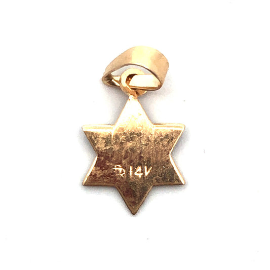 Designer 14K Yellow Gold Cutout 6-Point Star of David Hebrew Round Pendant
