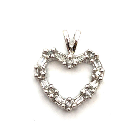14K White Gold Round Baguette Diamond Heart Shape Valentines Love Pendant