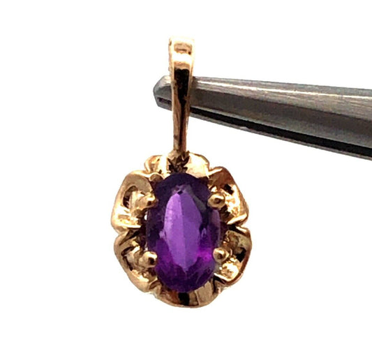 Designer PJ 14K Yellow Gold Oval Purple Amethyst Soliatire Flower Charm Pendant