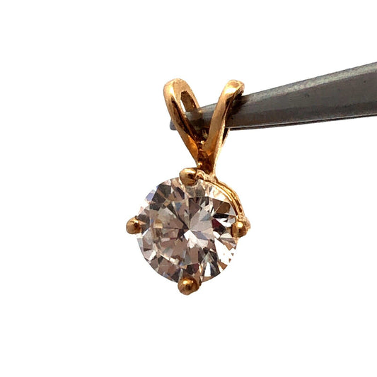 14K Yellow Gold Round Cubic Zirconia CZ Solitaire Charm Pendant