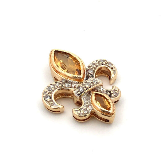 Designer AV 14K Yellow Gold Marquise Citrine Diamond Fleur De Lis Pendant