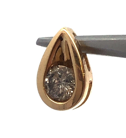 Designer 14K Yellow Gold Round Diamond Solitaire Teardrop Modernist Pendant