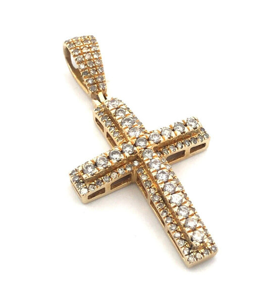 Estate 10K Yellow Gold Round Diamond Encrusted Cross Pendant