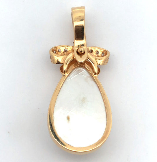 Designer 14K Yellow Gold Teardrop Pearl Diamond Accent Bow Enhancer Pendant