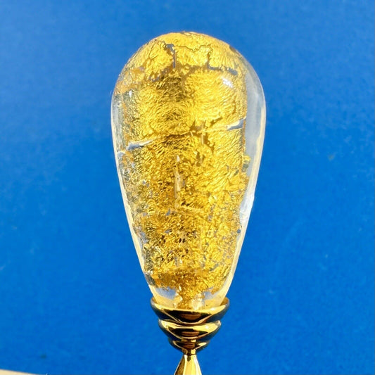 Designer MC 14K Yellow Gold Hand Blown Gold Leaf Glass Teardrop Pendant