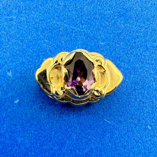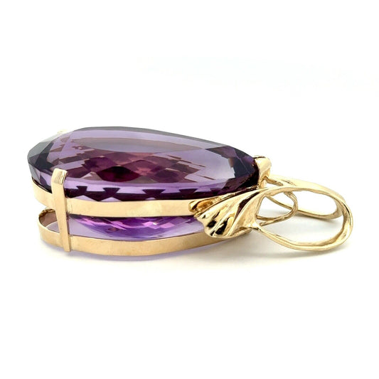 14K Yellow Gold Pear Faceted Amethyst Solitaire February Anniv Statement Pendant