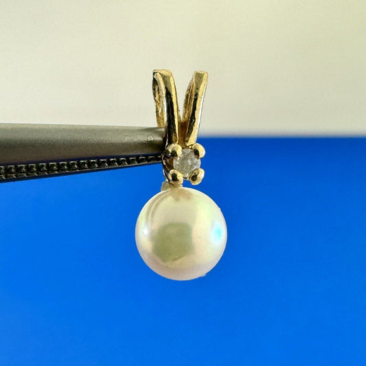 Classic 14K Yellow Gold Round Pearl Diamond Accented Petite Pendant