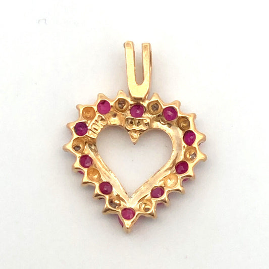 Designer CCC 10K Yellow Gold Round Ruby Diamond Cutout Love Heart Petite Pendant
