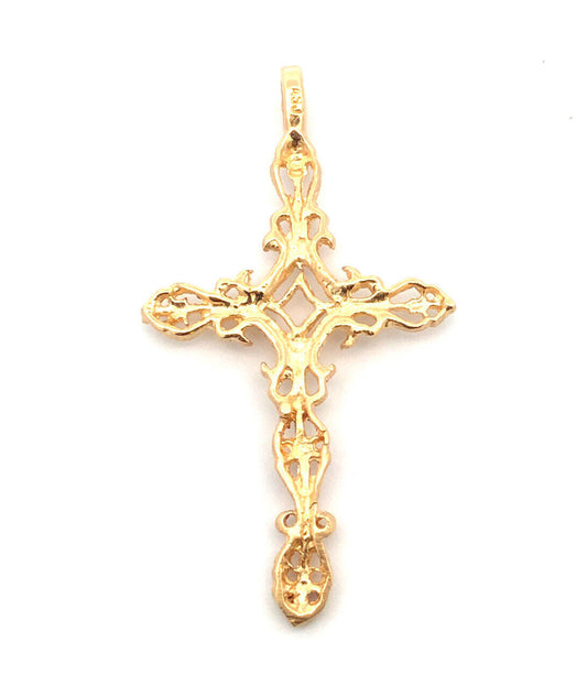 Designer ASJ 14K Yellow Gold Filigree Scroll Detailed Religious Cross Pendant