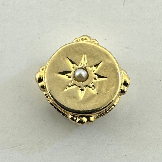 Designer 14K Yellow Gold Seed Pearl Star Design Round Slide Bracelet Charm