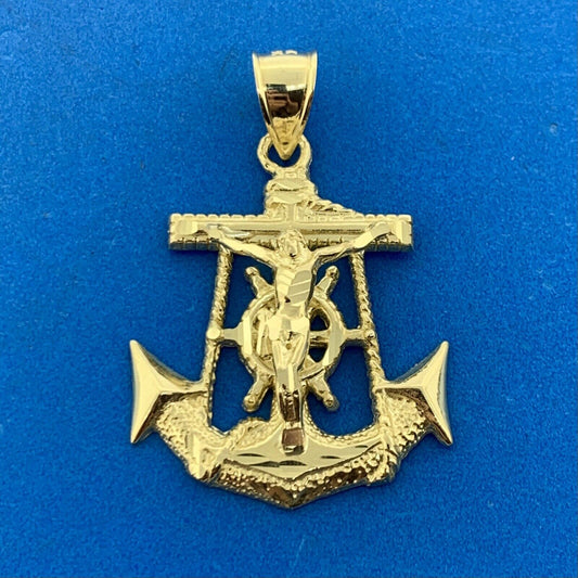Designer 10K Yellow Gold Sailors Cross Anchor Navy Religious Statement Pendant