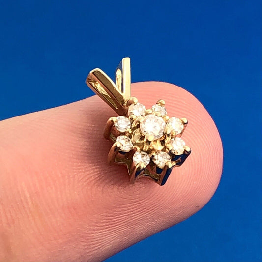 Beautiful 14k Yellow Gold Round Cut Diamond Starburst Cluster Pendant