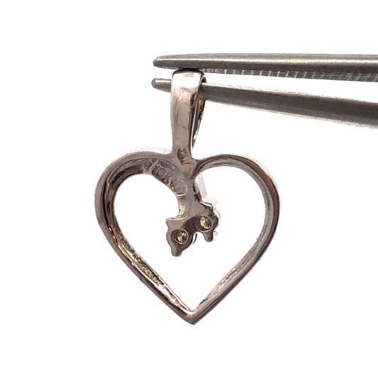 Designer TAJ 14K White Gold Diamond Modernistic Intertwined Heart Charm Pendant