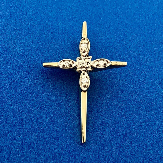 Elegant Modernist 14K Gold Diamond Cross Religious Easter Communion Pendant