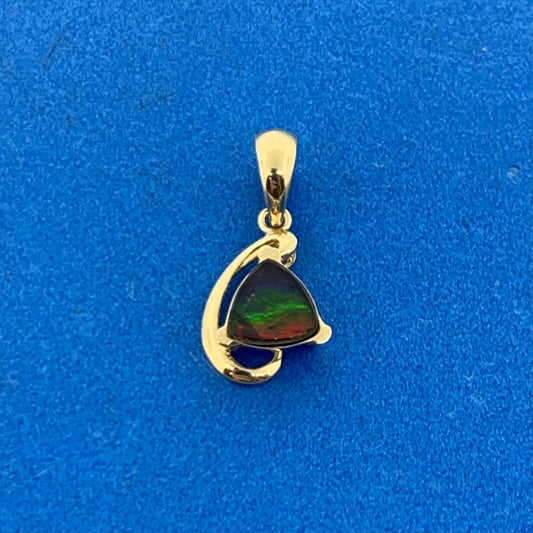 Designer 14K Yellow Gold Opal Trillion Doublet Modernist Pendant