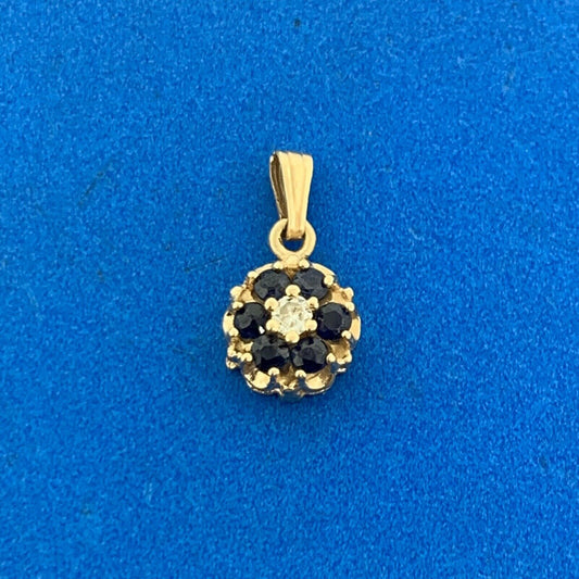 14K Yellow Gold Blue Sapphire Diamond Accented Floral Petite Charm Pendant