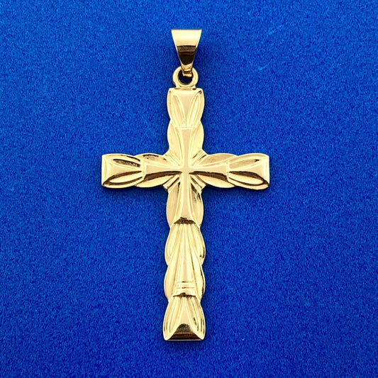 14K Yellow Gold Polished Textured Cross Religious Communion Statement Pendant