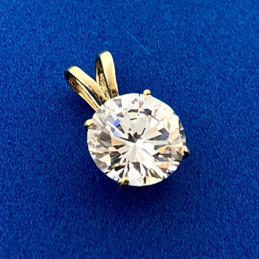 Classic 14K Yellow Gold Solitaire 2 Carat Cubic Zirconia CZ Drop Dangle Pendant