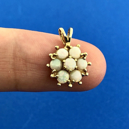Vintage 14K Yellow Gold Opal Flower Cluster October Anniversary Charm Pendant