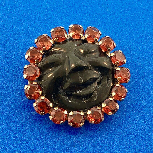 Art Deco Unusual 10K Yellow Gold Citrine Halo Carved Black Resin Cameo Pendant