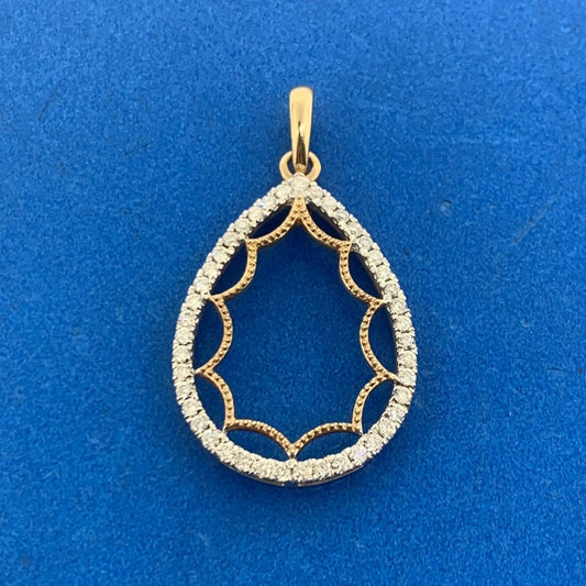 Designer 14K Yellow Gold Round Diamond Accented Teardrop Statement Pendant