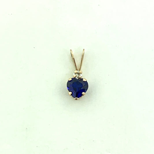 Designer 10K Yellow Gold Heart Shaped Blue Spinel White Cubic Zirconia Pendant