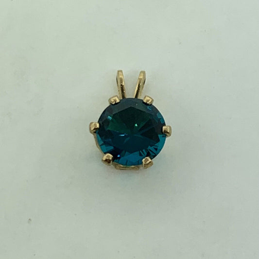 14K Yellow Gold Round Green Tourmaline Solitaire Drop Pendant