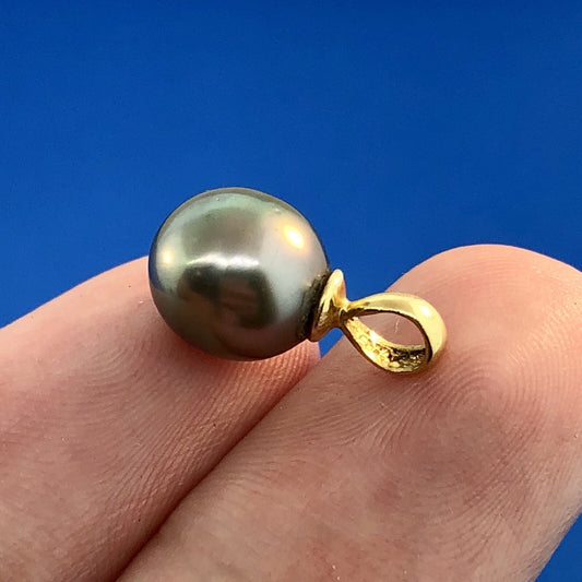 Designer 14K Yellow Gold Black Pearl Drop Dangle Charm Pendant