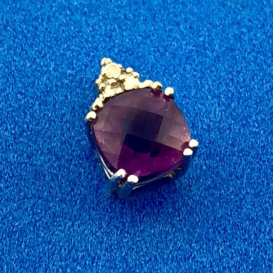Designer 14K White Gold Cushion Cut Amethyst Diamond Accent Charm Pendant