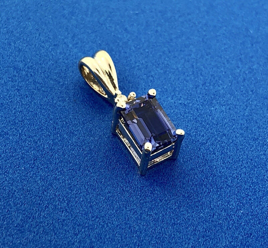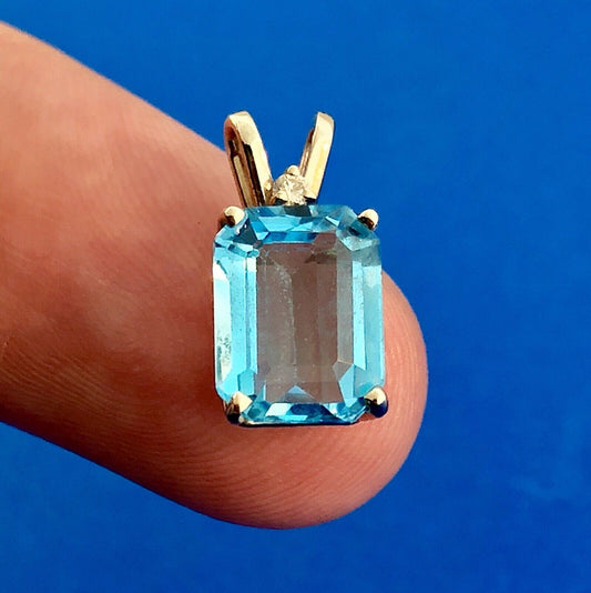 14k Yellow Gold Blue Topaz Slide Charm Pendant