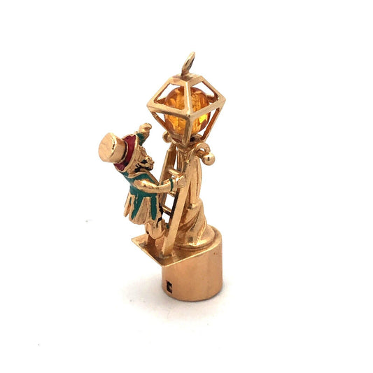 Vintage 14K Yellow Gold Enamel Lamp Lighter Lantern Lighter Charm Pendant