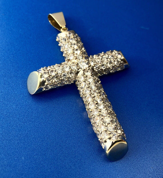 Statement 10K Yellow Gold Cubic Zirconia Encrusted Cross Religious Pendant