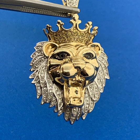 Custom 10K Yellow White Gold White Black Canary Diamond Lion King Jungle Pendant