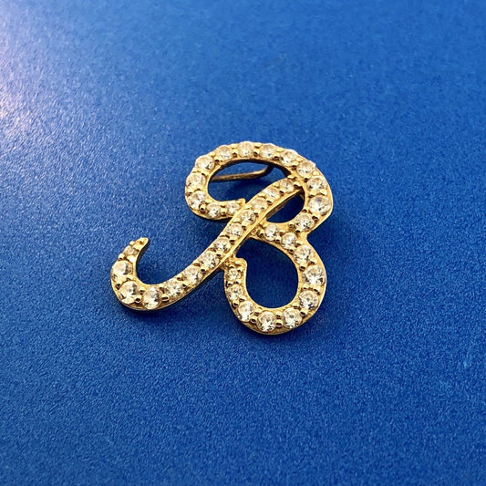 Designer 14K Yellow Gold Diamonique Cubic Zirconia Script B Monogram Pendant