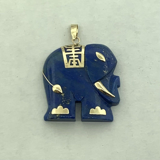 Designer 14K Yellow Gold Lapis Lazuli Chinese Character Elephant Pendant