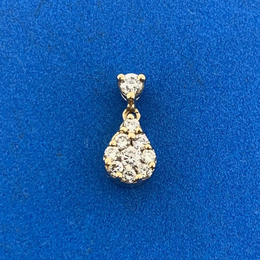 Designer 14K Yellow Gold Diamond Cluster Pear Drop Pendant