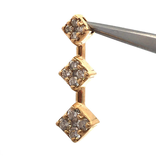 Stunning 14k Yellow Gold 3 Three Drop Diamond Pendant
