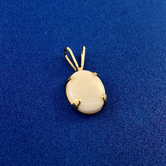 Vintage 14K Yellow Gold Oval Opal Solitaire October Anniversary Pendant