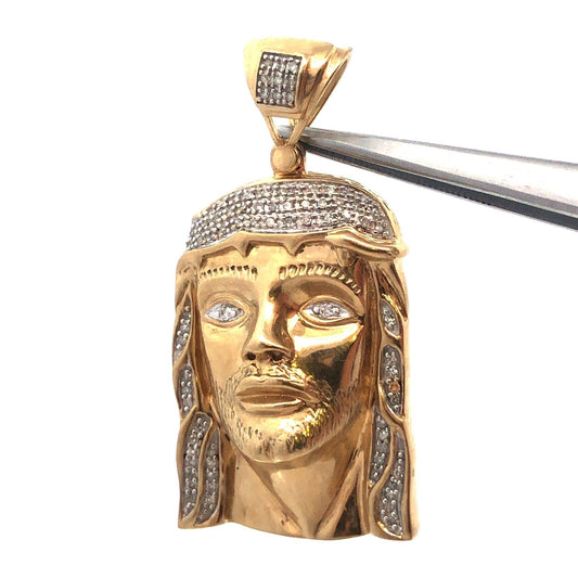 Gorgeous 10k Yellow Gold Diamond Jesus Head Face Crown of Thorns Faith Pendant
