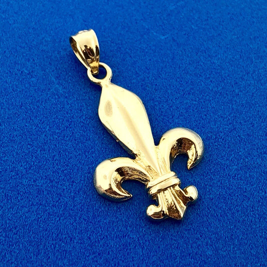 Classic 14K Yellow Gold Fleur De Lis New Orleans Louisiana Geaux Saints Pendant