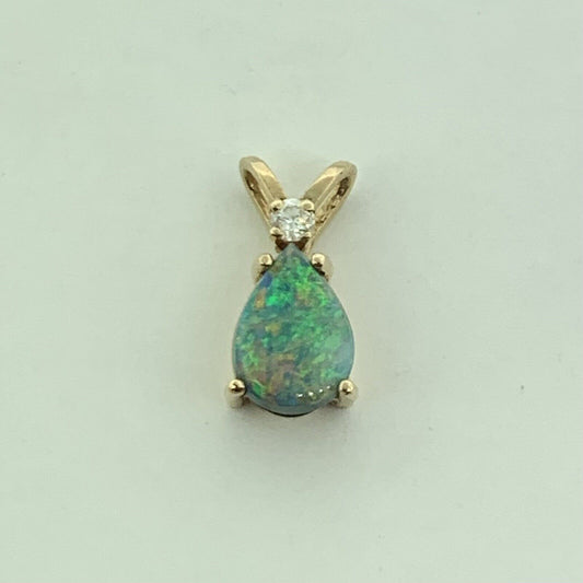 14K Yellow Gold Pear Opal Diamond Accented Drop Pendant
