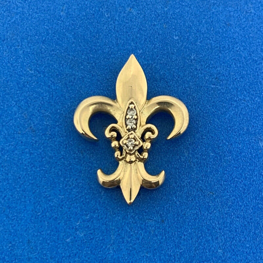 Designer 14K Yellow Gold Diamond Fleur De Lis French Religious Pendant
