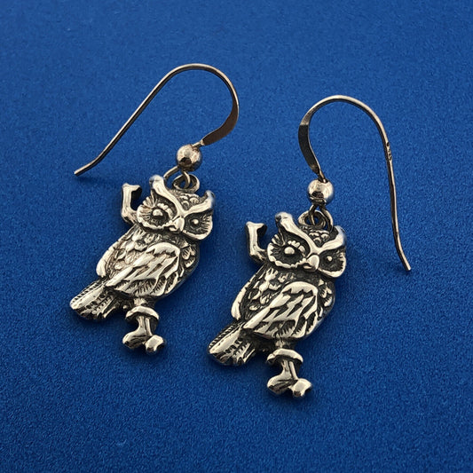 Stunning Sterling Silver 925 Detailed Night Owl Bird Dangle Hook Earring