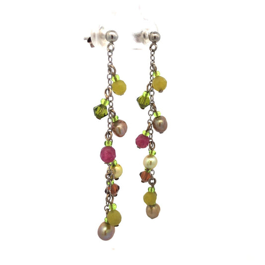 925 Sterling Silver Multi Gemstone Green Purple Cluster Dangle Earrings